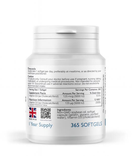Vitamin D3 5000 IU (125 µg) – Preservative-Free Softgels, 1-Year SupplyRegular price £26.00 GBPRegular priceUnit price / per